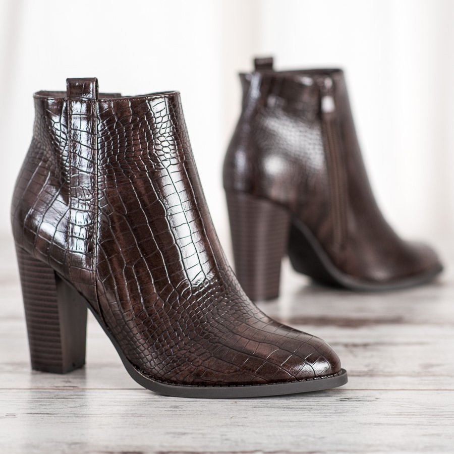 Sie bestehen aus hochwertigem ökologischem Leder, sind in der modischen braunen Farbe mit einem originellen Tiermuster erhältlich und sind eine perfekte Ergänzung zu verschiedenen Stilen. Die runde Spitze und der versteifte, eingearbeitete Absatz garantieren Tragekomfort und die Isolierung macht diese Stiefel perfekt für kältere Tage in der Herbst-/Wintersaison.