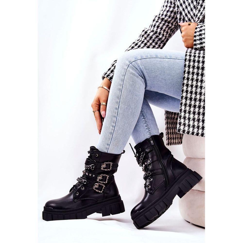 WS1 WS1 Stiefel Gebundene Kettenschnalle Schwarz Reiloy