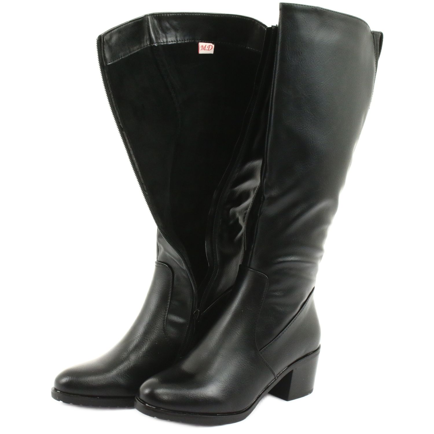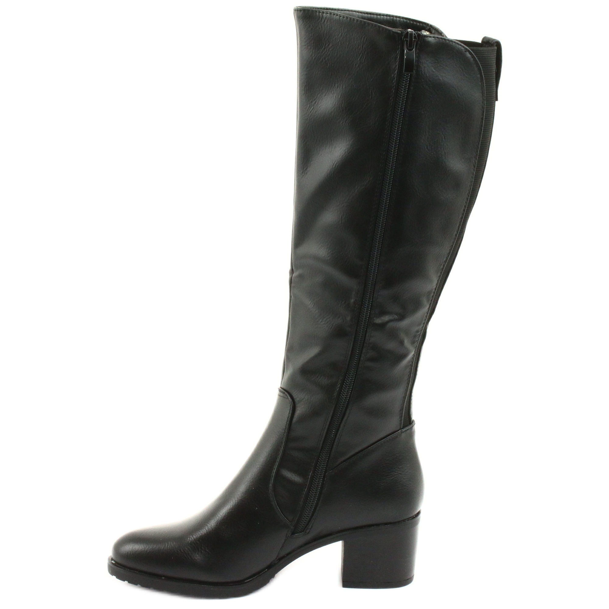 Die isolierten Stiefel M.Daszyński 153 mit hohen Absätzen in Schwarz sind die perfekte Wahl für Frauen, die Wert auf Eleganz gepaart mit Komfort legen. Diese stilvollen Schuhe sind aus hochwertigem Faux-Wildleder gefertigt und zeichnen sich durch einen elastischen Einsatz auf der Rückseite des Obermaterials aus, der eine perfekte Passform an der Wade ermöglicht. Der mit einem zarten Teddybär isolierte Innenraum sorgt auch an kälteren Tagen für angenehme Wärme.