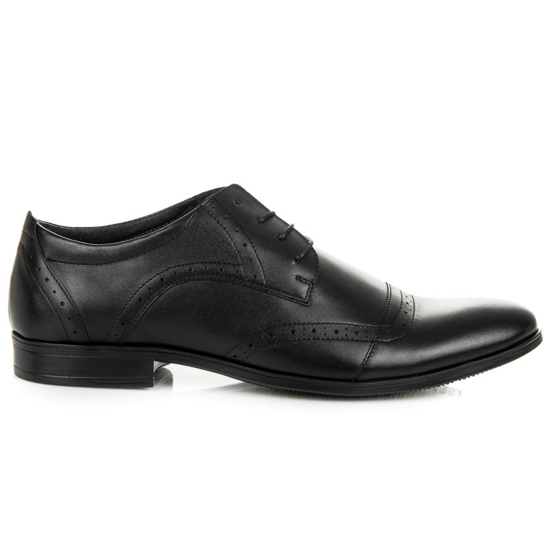 Lucca – Herrenschuhe in einer klassisch-eleganten Variante. Schwarzes, glattes Naturleder und ein zeitloser Schnitt machen das Modell perfekt zu einem Anzug und anderen eleganten Styles. Dank der stabilen, flachen Kunststoffsohle sorgen die Schuhe für ein angenehmes Gehen und ermöglichen stundenlanges Tanzen.