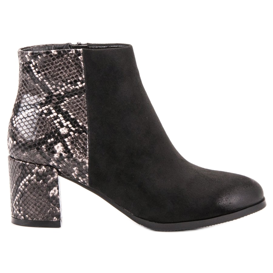 Lernen Sie die schwarzen Stiefeletten von Vinceza im modischen Animal-Print kennen, die jedem Ihrer Stylings einen Hauch von Eleganz verleihen. Ihr niedriger Absatz von 6 cm verlängert Ihre Beine effektiv und sorgt gleichzeitig für Tragekomfort. Dank der Isolierung sind sie perfekt für kalte Tage und der knöchellange Schnitt sorgt für Eleganz.