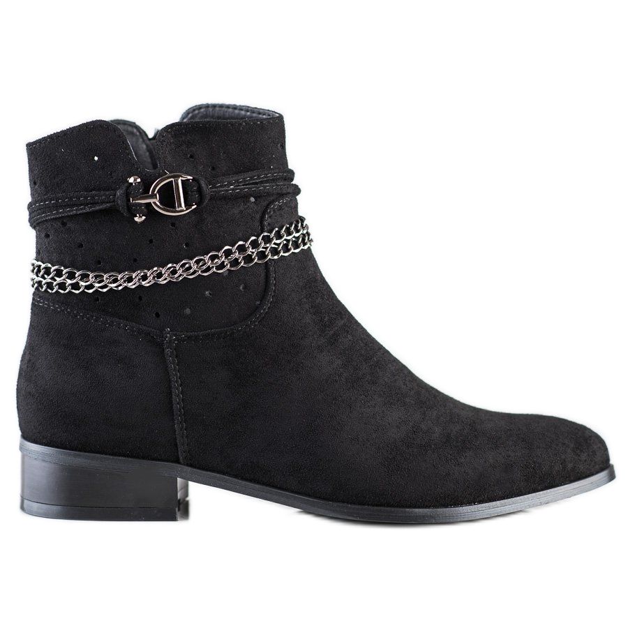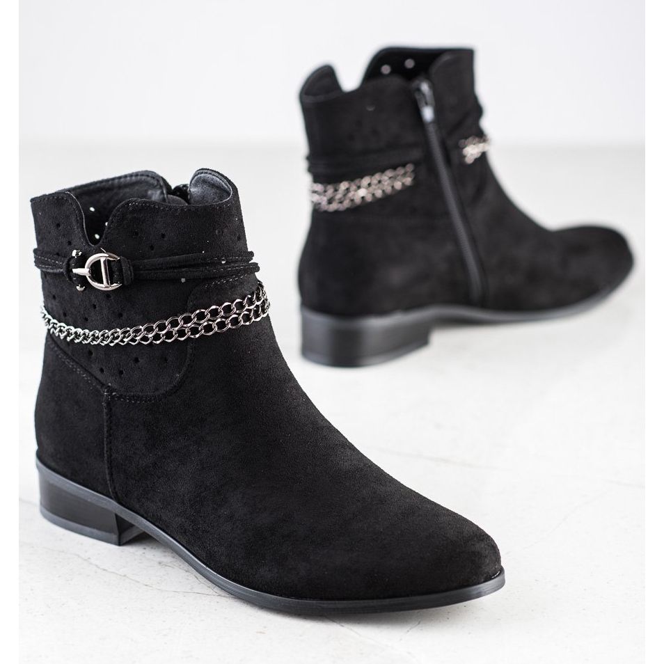 VINCEZA Stiefeletten mit Zierkette in Schwarz sind eine ideale Wahl für Frauen, die Wert auf Eleganz und Komfort im Alltag legen. Aus hochwertigem Wildlederimitat gefertigt, haben sie einen stilvollen und lässigen Charakter, perfekt für die Herbst-/Wintersaison.