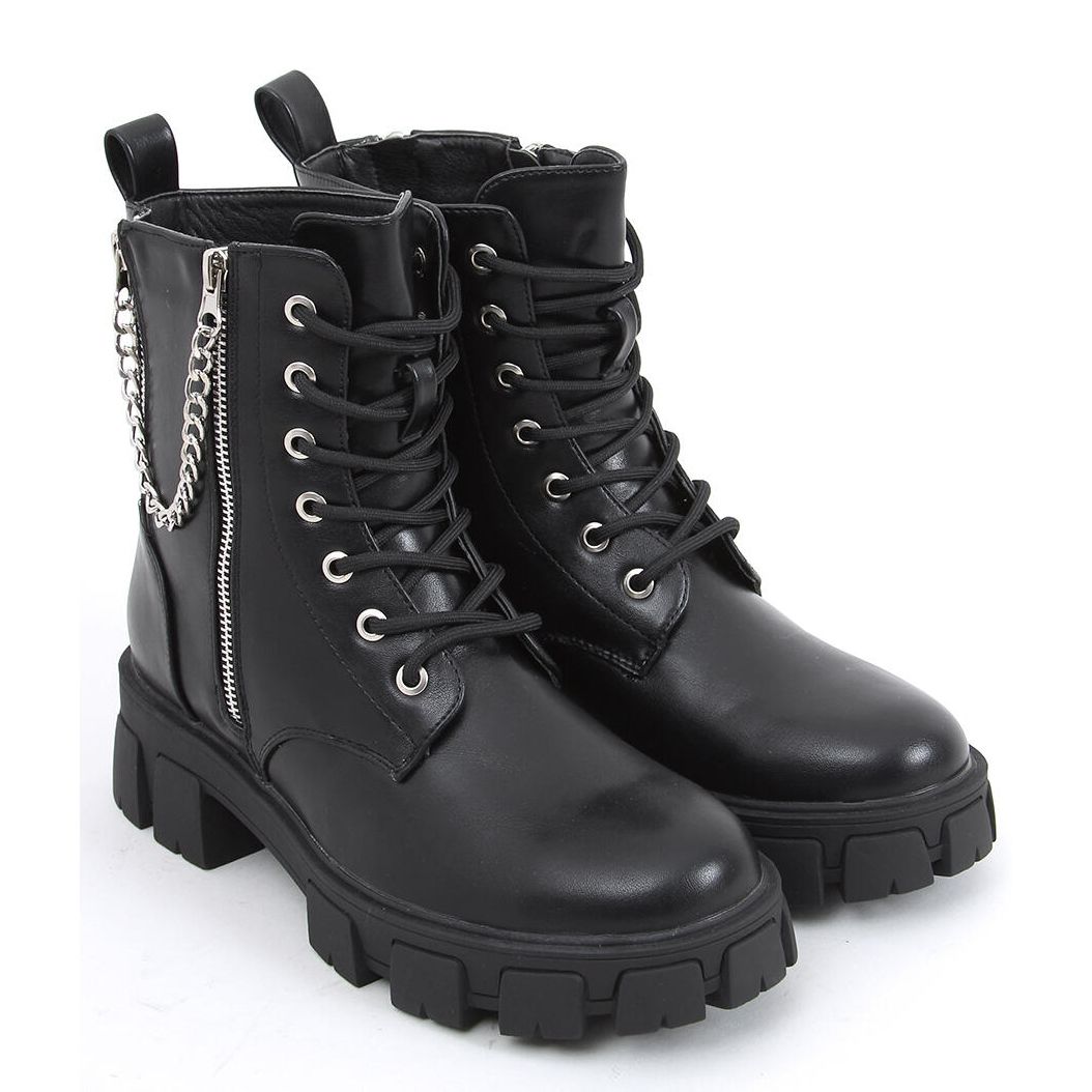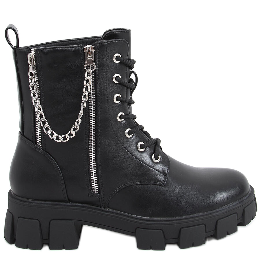Entdecken Sie die einzigartigen Eline Black Stiefeletten mit Kette, die zu einem unverzichtbaren Element Ihrer Garderobe werden! Diese eleganten, schwarzen Arbeiterschuhe mit dicker Sohle vereinen aktuelle Trends mit Funktionalität und sind so ein ideales Modell sowohl für den Alltag als auch für den Casual-Look.
