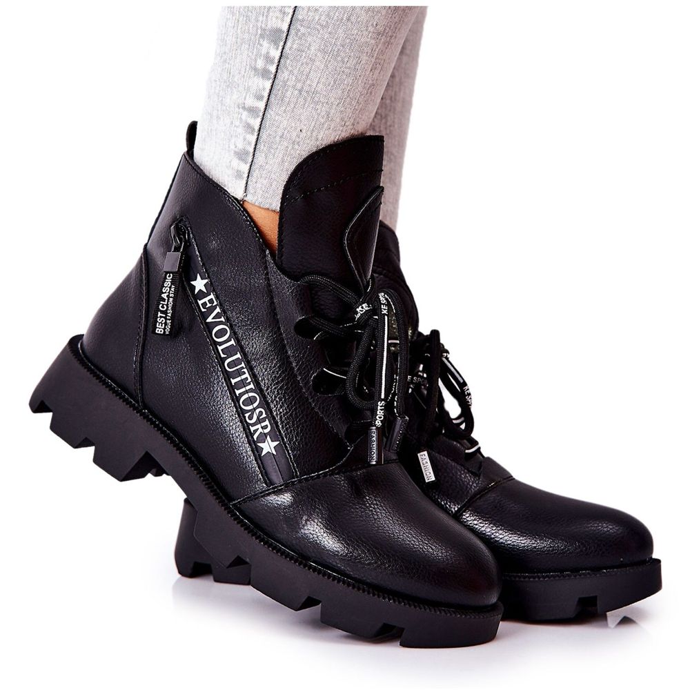 Dieses Modell ist praktisch und elegant, dank zwei Schiebern – einer davon hat eine dekorative Funktion, was das einzigartige Design zusätzlich unterstreicht. Durch die Möglichkeit, den Schaft mittels Schnürung an das Bein anzupassen, passen diese Stiefel perfekt an jeden Fuß.