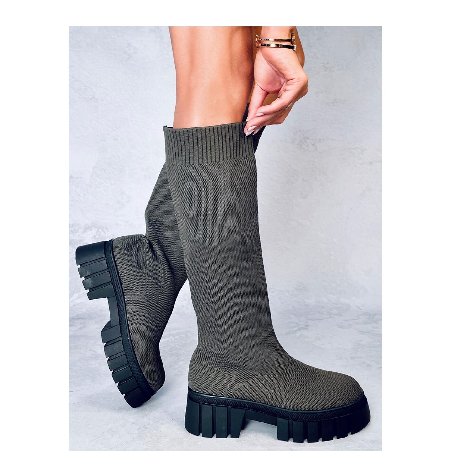 Dank des flexiblen Obermateriales kleben die Schuhe gut bis zum Bein, was sie nicht nur ästhetisch, sondern auch sehr praktisch macht - sie sind leicht anzuziehen. Eine massive Sohle mit einer Höhe von 3 cm und einer 5 -cm -High Heel fügt etwas Kraft und Charakter hinzu, während sie beim Gehen Stabilität gewährleistet.