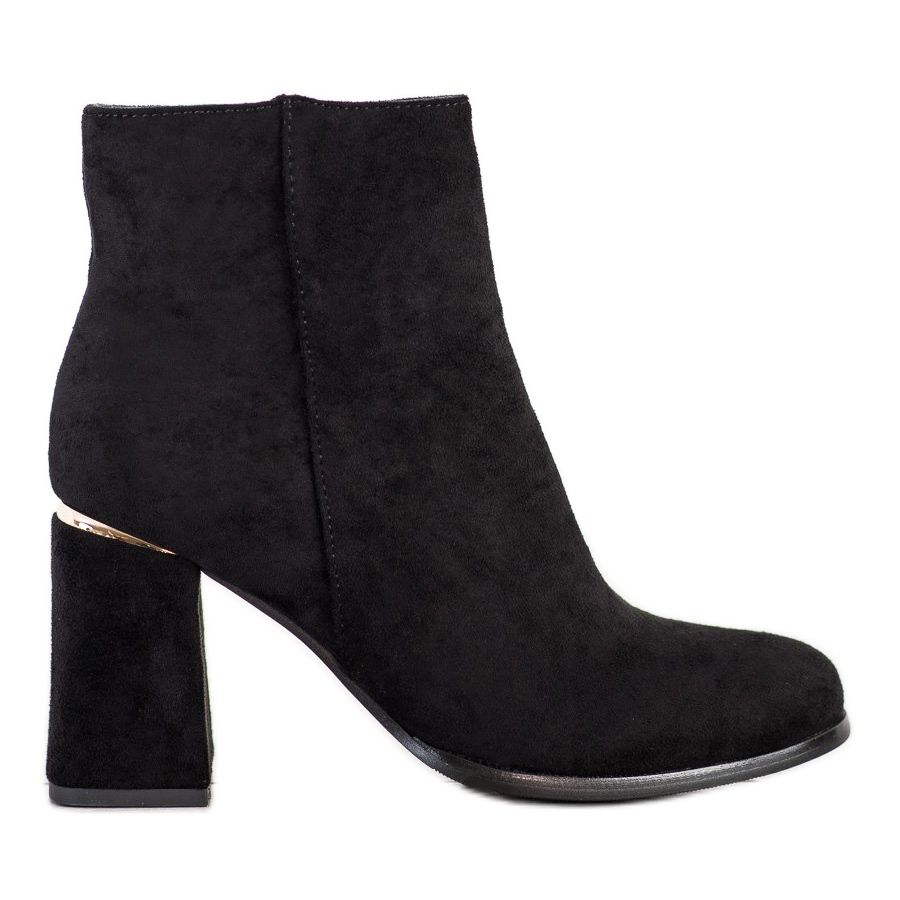 SHELOVET Stiefeletten mit goldenem Einsatz in Schwarz sind die perfekte Wahl für Frauen, die elegantes und modisches Schuhwerk für die Herbst-/Wintersaison suchen. Aus hochwertigem Wildlederimitat und ökologischem Leder gefertigt, garantieren sie nicht nur einen stilvollen Look, sondern auch Tragekomfort.