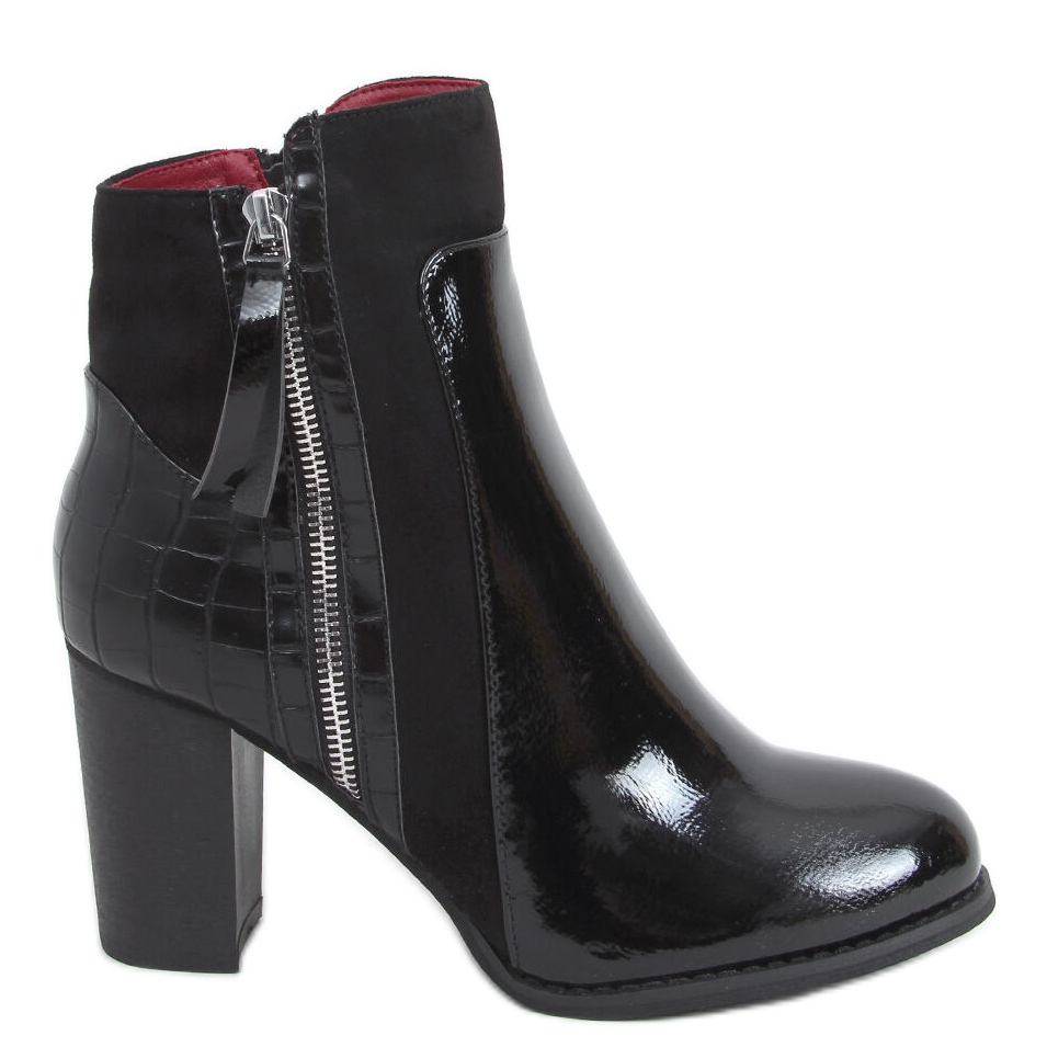 Einer ihrer wichtigsten Vorteile ist die universelle schwarze Farbe, die perfekt zu verschiedenen Stilen passt. Das Lackfinish und die Einsätze mit Schlangenledermotiv verleihen den Schuhen einen einzigartigen Charakter und machen sie zu einem modischen Element Ihrer Garderobe. Dank des praktischen Reißverschlusses an der Seite des Obermaterials wird das An- und Ausziehen der Stiefel äußerst einfach und bequem.