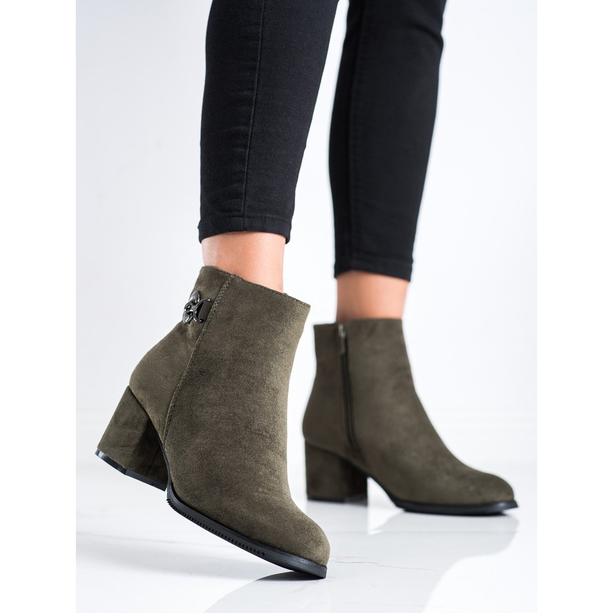 Dabei handelt es sich um elegante und stilvolle Stiefeletten mit hohen Absätzen der Marke J. Star, die jeden Modeliebhaber begeistern werden. Das Modell in der schönen grünen Farbe besteht aus hochwertigem Faux-Wildleder mit einer Struktur, die Wildleder imitiert, was ihm einen einzigartigen Charme und Eleganz verleiht. Die Stiefel zeichnen sich durch einen verstärkten, versteiften Absatz und einen bequemen 6,5 cm hohen Absatz aus, perfekt für den Alltag und zu besonderen Anlässen.