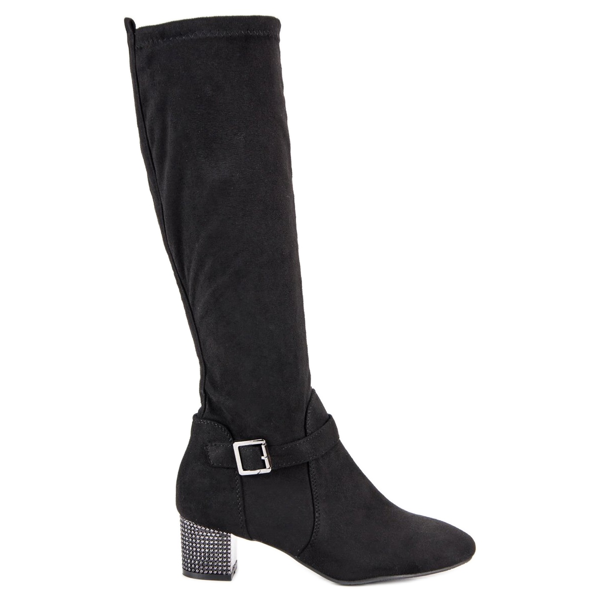 Stiefel, die bis knapp über das Knie reichen, sind nicht nur stylisch, sondern auch äußerst universell. Sie passen perfekt zu Kleidern und Röcken und sind daher eine ideale Lösung für verschiedene Anlässe – vom Alltagsausflug bis zur eleganten Party. Darüber hinaus verleihen ihnen die dekorative Schnalle und die Strasssteine einen modernen Charakter, der sie von anderen Modellen unterscheidet.