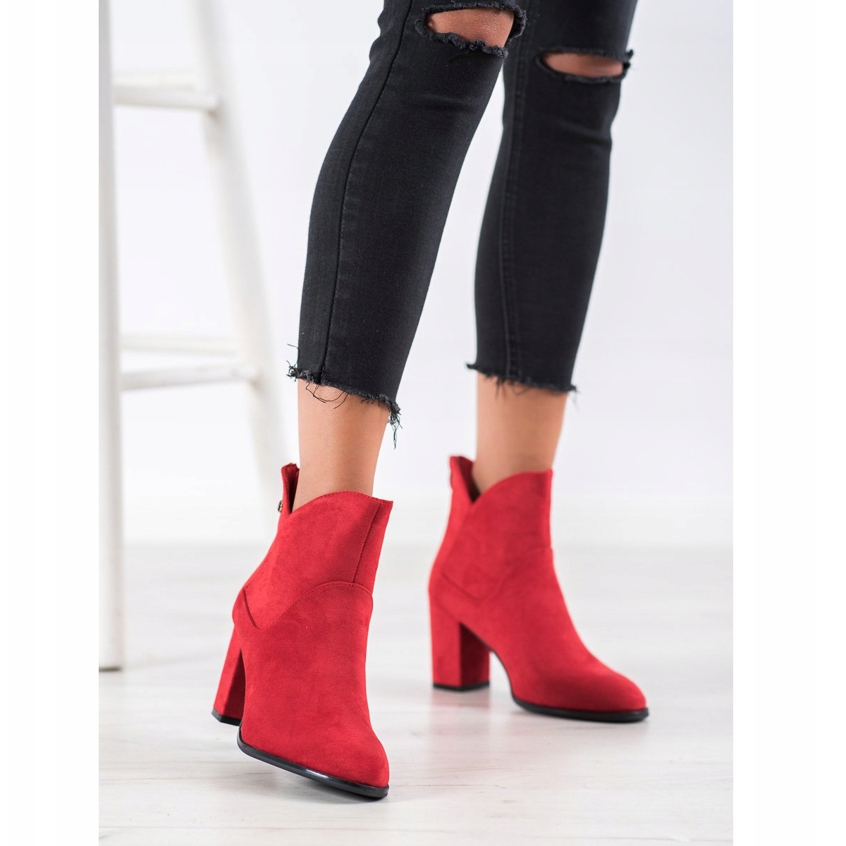 Wir präsentieren Wildleder-Stiefeletten mit hohen Absätzen in einem intensiven Rotton vom renommierten Hersteller SHELOVET. Diese eleganten Damenschuhe passen perfekt zu jedem Herbst-Winter-Styling und verleihen ihm einen einzigartigen Charakter.