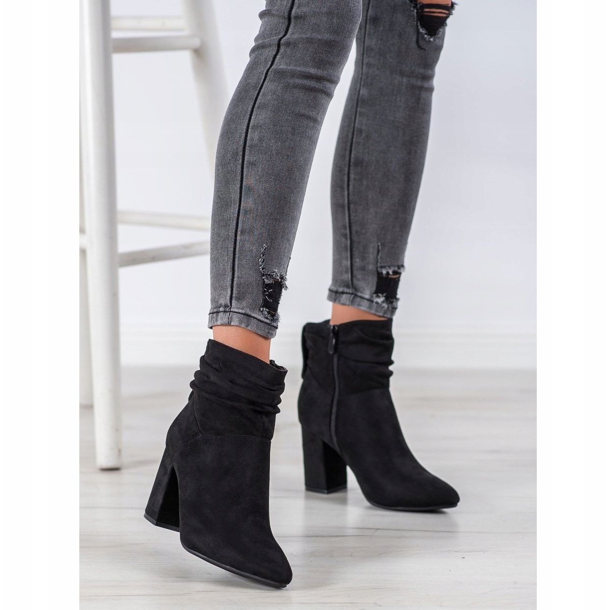 Schwarze Stiefeletten mit hohen Absätzen der Marke Shelovet sind ein Muss in jeder Damengarderobe, insbesondere in der Herbst-Winter-Saison. Ihr elegantes und dennoch dezentes Design macht sie perfekt für alltägliche und formellere Stile. Aus hochwertigem ökologischem Wildleder gefertigt, vereinen sie Komfort und einen modischen Look.