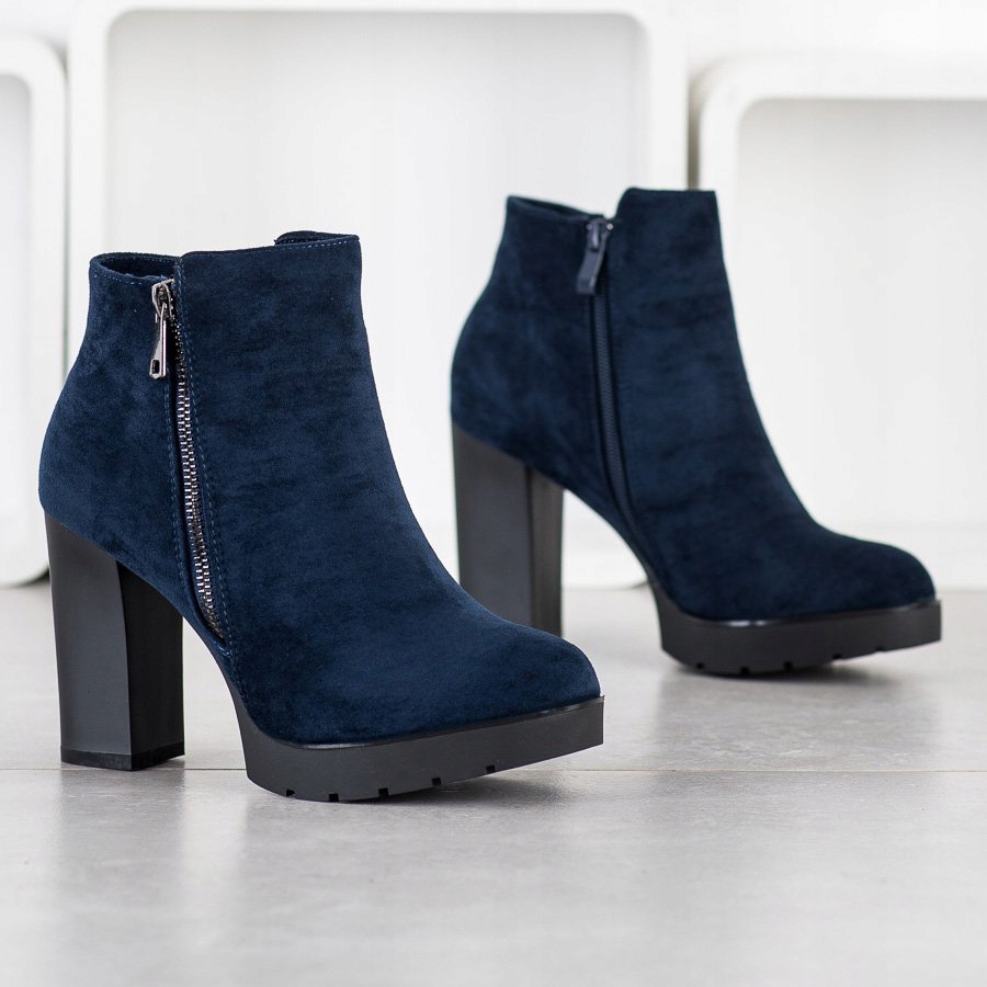Dabei handelt es sich um elegante Stiefel mit hohen Absätzen der renommierten Marke Small Swan, die perfekt für die kommende Herbst-/Wintersaison geeignet sind. Diese Stiefeletten aus hochwertigem, ökologischem Wildleder in einem tiefen Marineblau vereinen Stil und Komfort und passen sich den Anforderungen einer modernen Frau an.