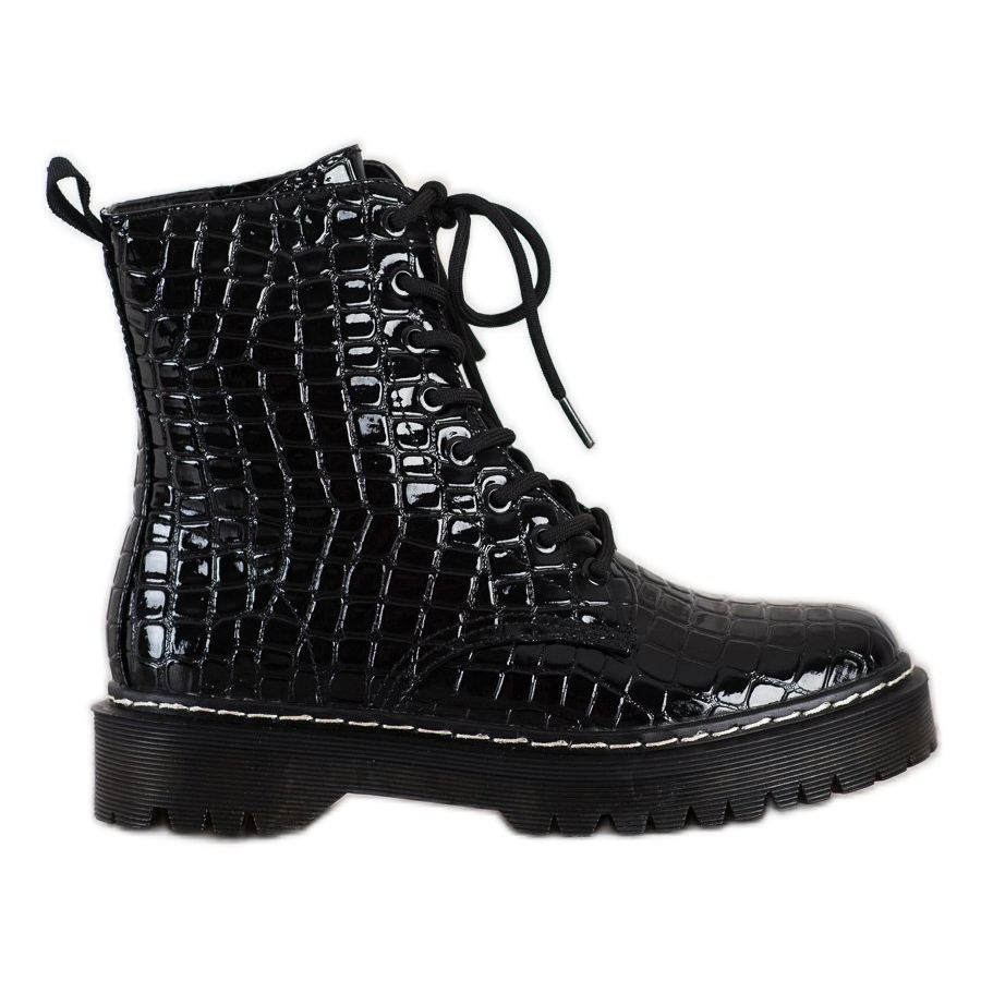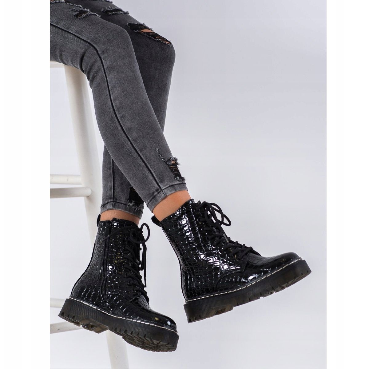 Die aus hochwertigem ökologischem Leder gefertigten SHELOVET Bovver-Stiefel sehen dank der lackierten Oberfläche, die Aufmerksamkeit erregt, phänomenal aus. Ihre runde Spitze und der flache 3-cm-Absatz sorgen für Tragekomfort und die Isolierung hält Ihre Füße auch an kälteren Tagen warm.