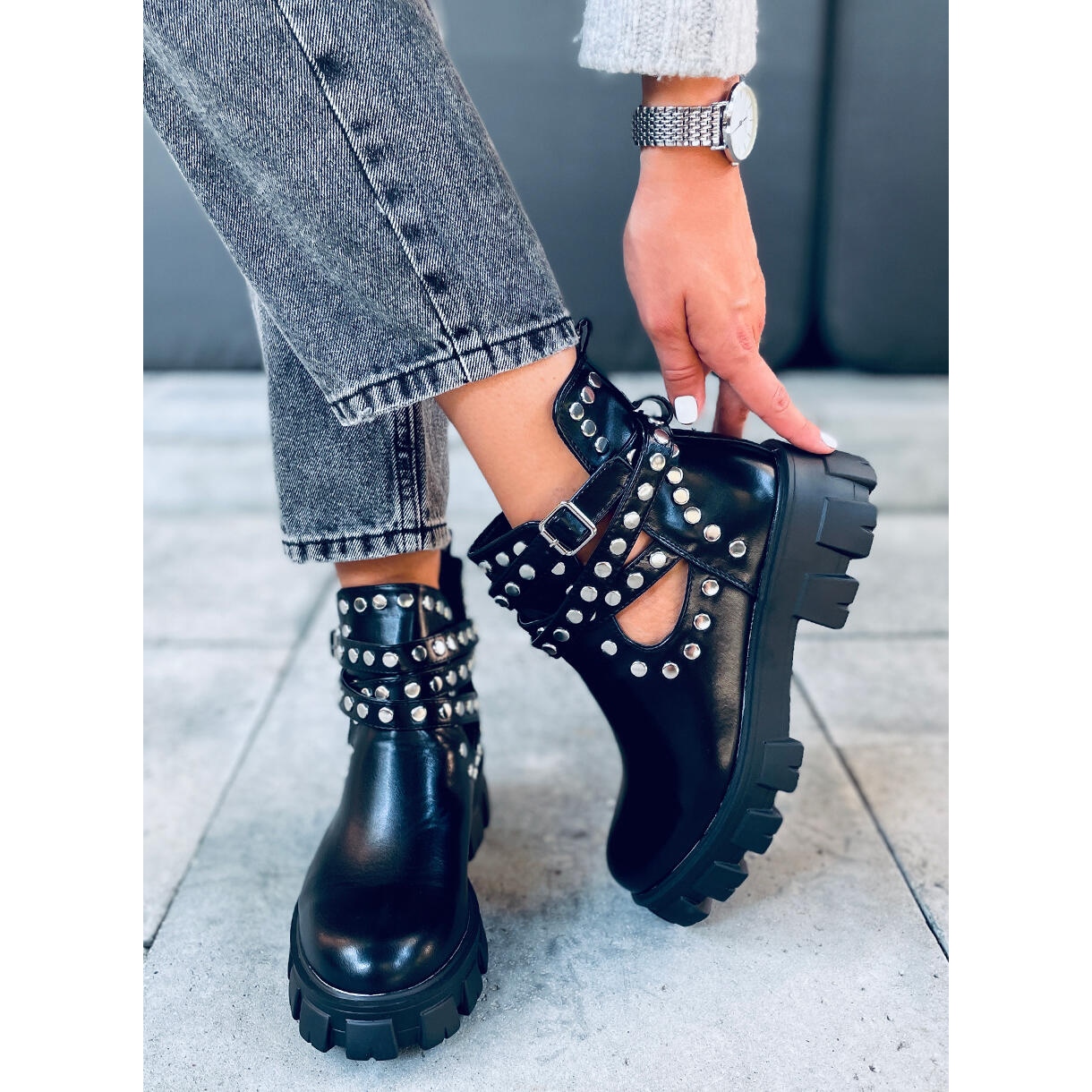 Entdecken Sie die außergewöhnlichen schwarzen NC1127 Black Stiefeletten mit Nieten, die ein absoluter Trend-Hit sind! Diese stylischen Damen-Stiefeletten vereinen auffällige Cut-Outs und rockigen Charakter durch den Einsatz von Strasssteinen und Nieten. Sie sind sowohl für den täglichen Gebrauch als auch für besondere Anlässe die perfekte Wahl und verleihen Ihrem Styling eine einzigartige Note.