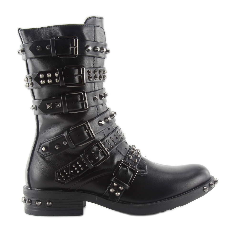 Inna marka Stiefel mit Nieten schwere Optik ae73p schwarz