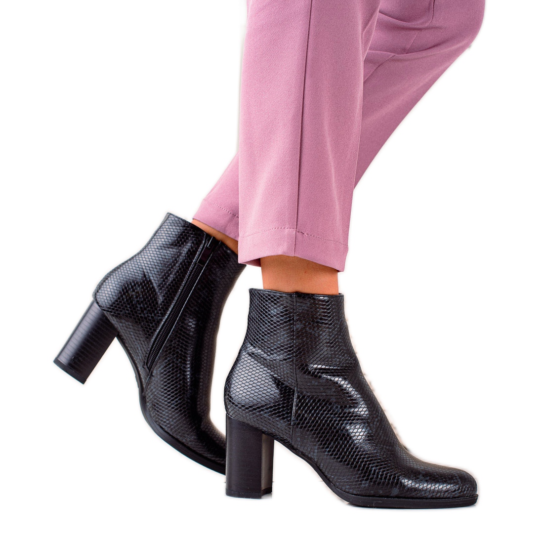Entdecken Sie Eleganz und Komfort im neuesten Modell der TRNDI Snake Print Stiefeletten in Schwarz. Diese einzigartigen Schuhe vereinen modernes Design und klassische Elemente und sind damit die perfekte Wahl für jeden Anlass.