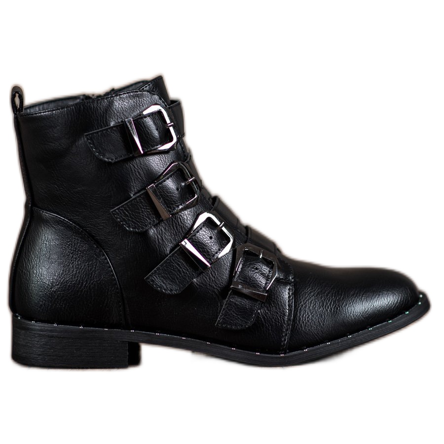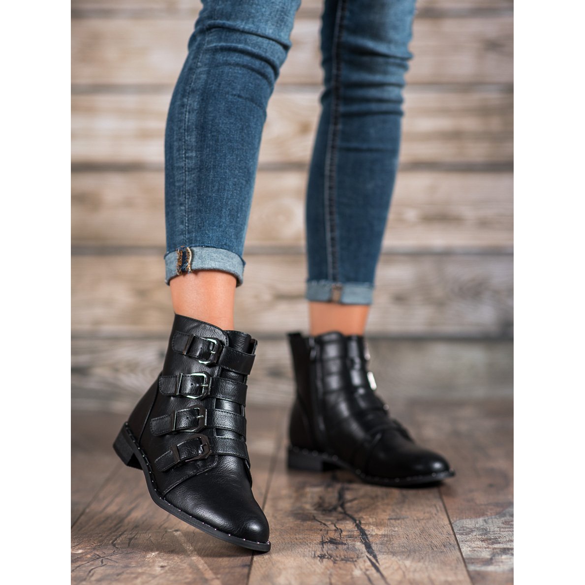 Cm Paris Stiefeletten mit Schnallen, schwarz, sind die perfekte Wahl für Frauen, die Wert auf die Kombination aus Komfort und rockigem Stil legen. Diese schwarzen Stiefel sind aus modernem, ökologischem Leder von höchster Qualität gefertigt, was nicht nur ihren Designer-Look unterstreicht, sondern auch die Umwelt schont. Dank Metallschnallen und Strasssteinen erhalten die Schuhe einen einzigartigen Charakter, der jedem Styling einen Hauch von Eleganz verleiht.