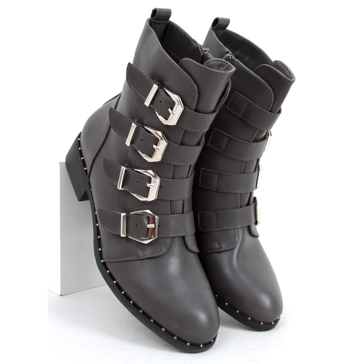 Details: Stiefel mit Schnallen Punto Grey grau