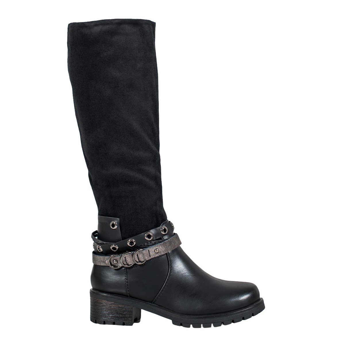 SHELOVET Stiefel mit Strasssteinen in Schwarz sind die perfekte Wahl für Frauen, die Stil mit Komfort verbinden möchten. Diese klassischen Schuhe zeichnen sich durch einen hohen Schaft aus, der bis zur Mitte der Wade reicht, und originelle Zierriemen um den Knöchel, die mit Strasssteinen verziert sind, was ihnen einen modischen Charakter verleiht.