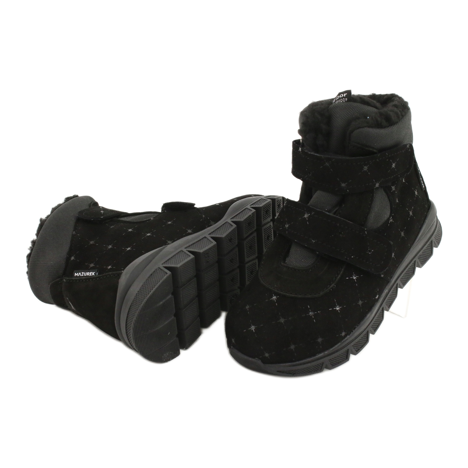 Die schwarzen TE-POR Mazurek 1360 M Stiefel mit Membran sind die perfekte Wahl für kleine Fashionistas! Diese Winterstiefel vereinen Eleganz und Funktionalität und sorgen dank der wasserdichten Membran für Wasserdichtigkeit. Aus hochwertigem Naturleder und Material gefertigt, sind sie nicht nur stilvoll, sondern auch äußerst bequem.