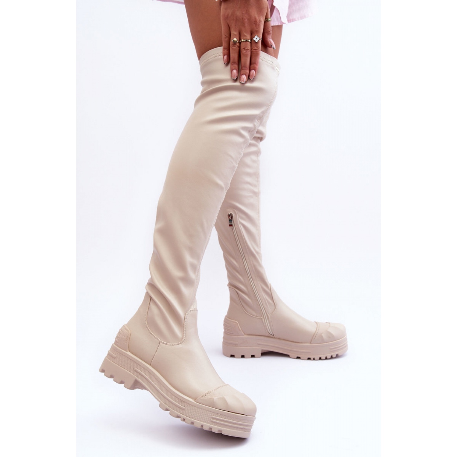 Entdecken Sie Eleganz und Komfort in den Dudes 15863 hohen Stiefeln in einem wunderschönen beige Farbton, dem Schritt in Stil. Diese stilvollen Stiefel, die über das Knie gingen, bestanden sorgfältig aus hochwertigem ökologischem Leder, was sie zu einer idealen Wahl für Liebhaber von modischen und gleichzeitig ethischen Lösungen macht.