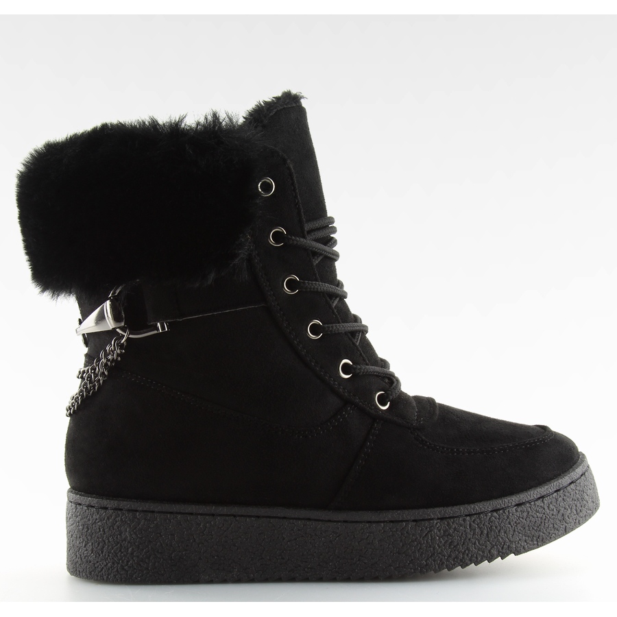 Die Schnür-Schneestiefel GF-196 sind ein Angebot für Frauen, die Wert auf Komfort und einen modischen Look auch bei niedrigen Temperaturen legen. Hergestellt aus ökologischem Wildleder, isoliert mit dickem Fell – sie isolieren effektiv vom kalten Boden und die hohe Sohle (3,5 cm) sorgt für Komfort und Stabilität. Stilvolles Fell am Obermaterial und dekorative Ketten auf der Rückseite verleihen den Schuhen einen originellen Charakter.