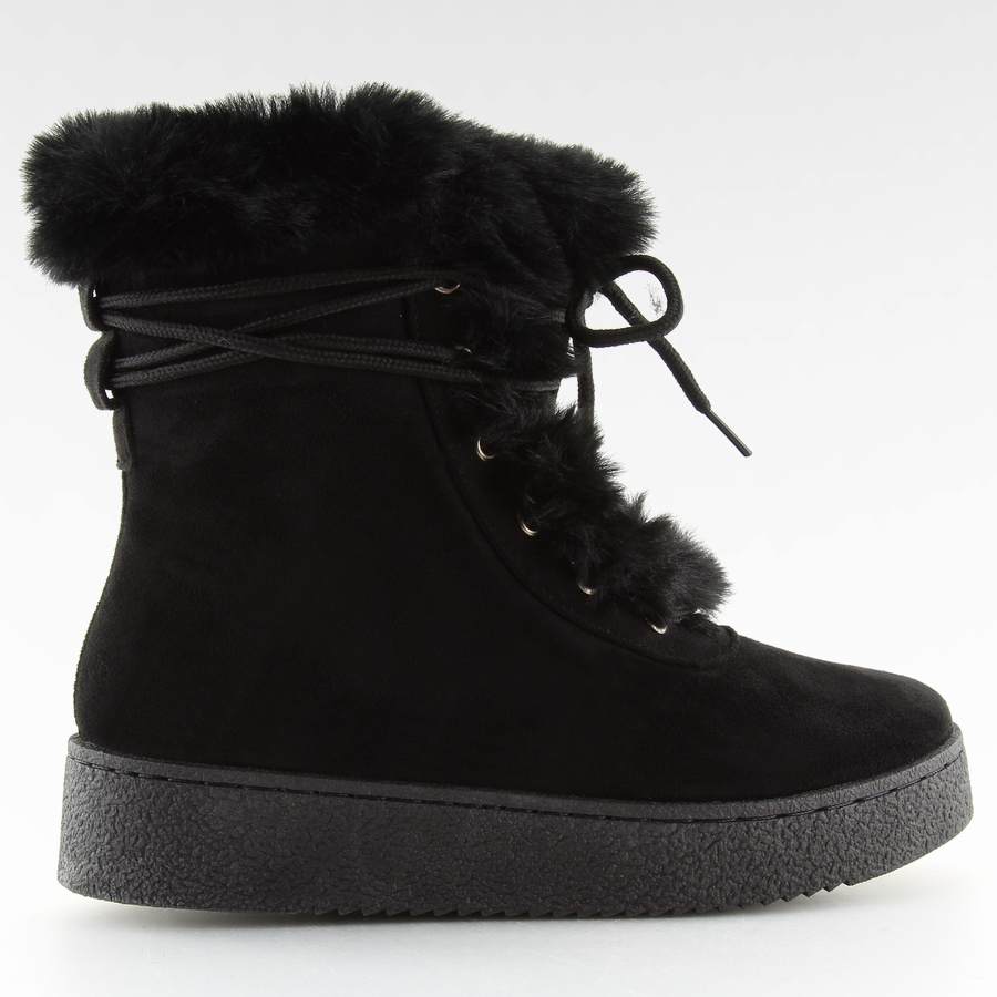 Klassische, isolierte Damenstiefel mit Wintercharakter – perfekt für frostige Tage. Ein hoher Schaft, der bis über den Knöchel reicht, am Rand mit weichem Fell verziert ist, und die dicke Fellinnenseite sorgen für Wärme und Komfort auch bei niedrigen Temperaturen. Das Obermaterial ist elegantes ökologisches Wildleder in universellem Schwarz, wodurch die Schuhe zu vielen Stilen passen.