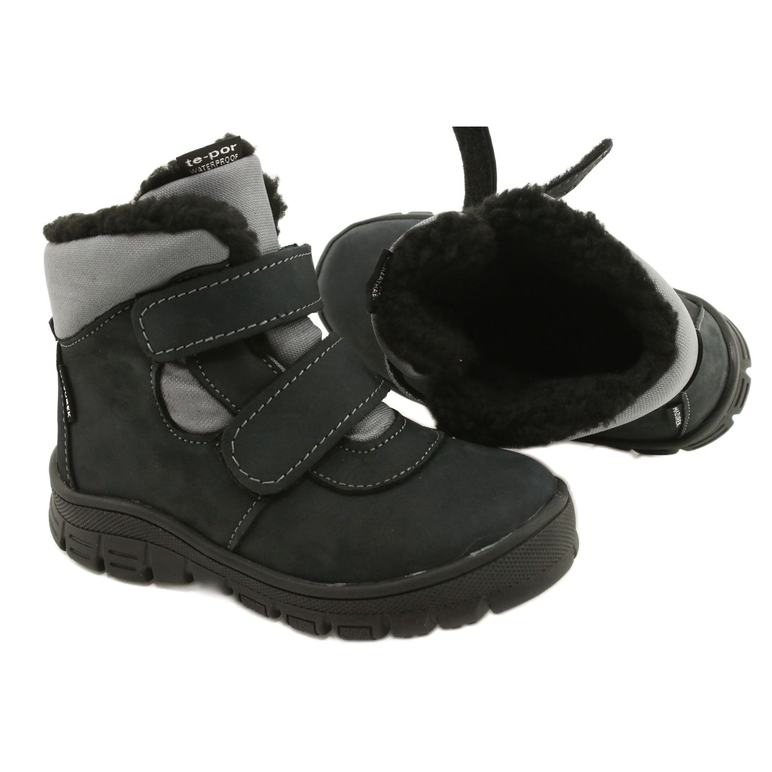 Mazurek 1360 Stiefel mit Membran in der Farbe Anthrazit sind eine ideale Wahl für aktive Jungen, die Wert auf Komfort und Sicherheit legen. Hergestellt aus hochwertigem Naturleder kombiniert mit Material in einem modischen Schwarzton mit einem Hauch Marineblau sorgen diese Kinderschuhe für Wasserdichtigkeit und gute Bedingungen bei Winterspaziergängen.