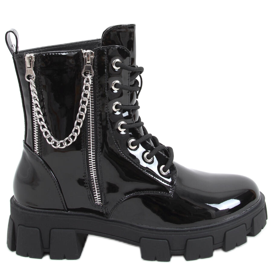 Inna marka Stiefeletten aus Lackleder mit Kette Mina Black schwarz