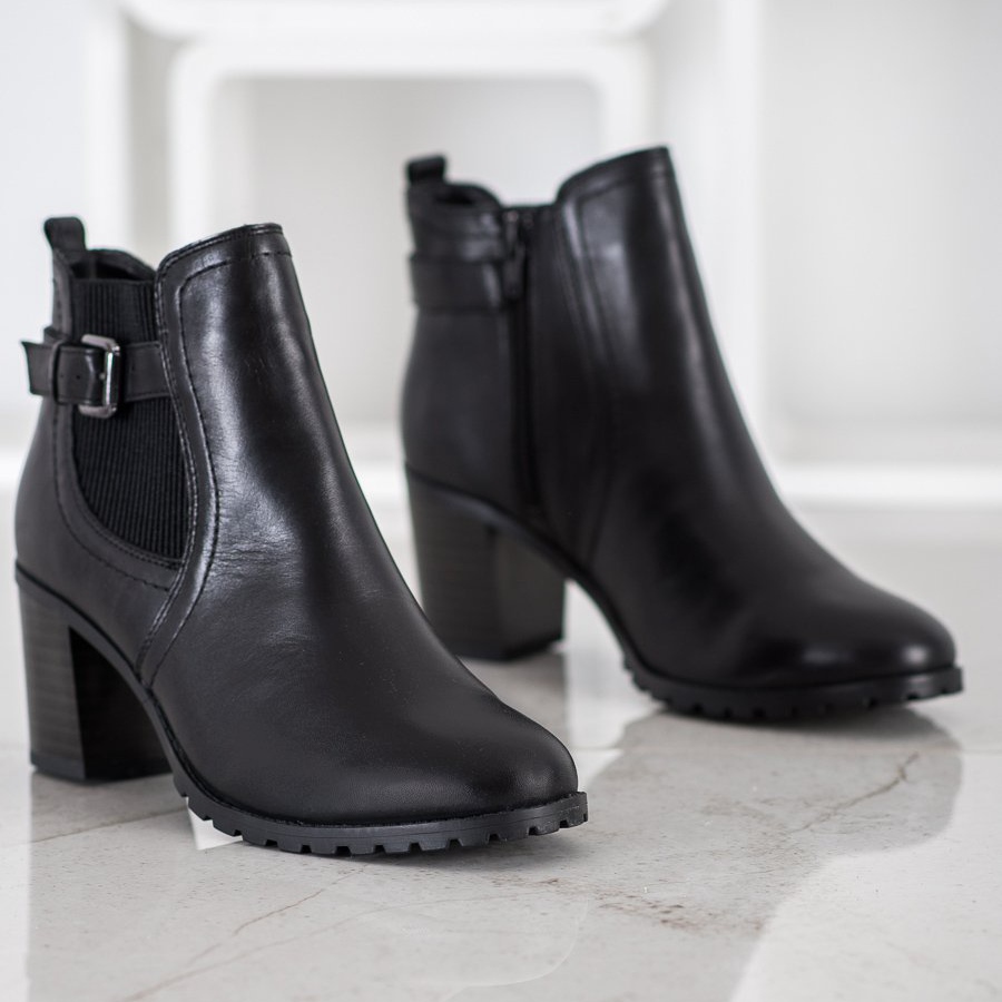 Entdecken Sie die Eleganz und den Komfort der Evento-Lederstiefeletten mit hohem Absatz in klassischem Schwarz. Diese einzigartigen Schuhe aus der KeeShoes-Kollektion sind die perfekte Wahl für die Herbst-/Wintersaison und kombinieren lässigen, eleganten und klassischen Stil.