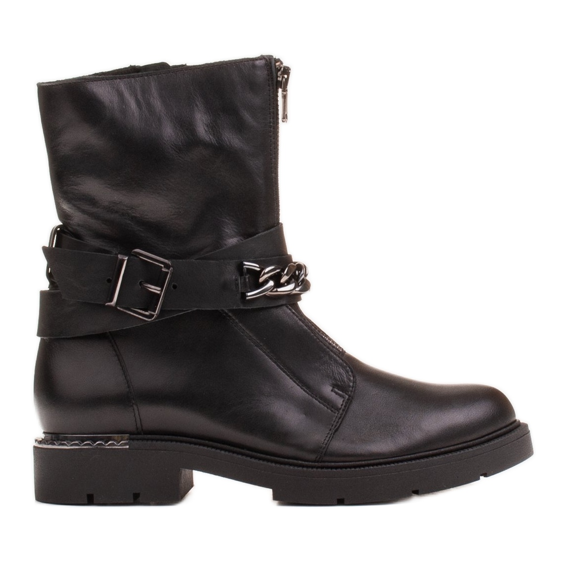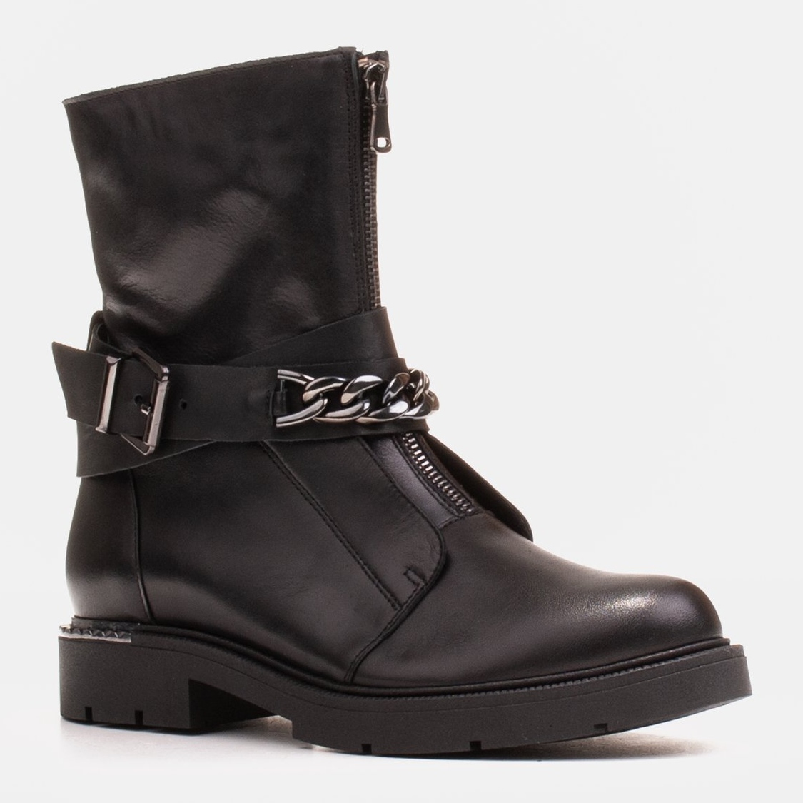 Entdecken Sie das neueste Angebot der Marke Marco Shoes – Lederstiefeletten mit Kette, Schnalle und Reißverschluss, die Stil und Komfort perfekt vereinen! Diese eleganten Stiefel in intensivem Schwarz sind die perfekte Wahl für Frauen, die in jeder Umgebung auffallen möchten.