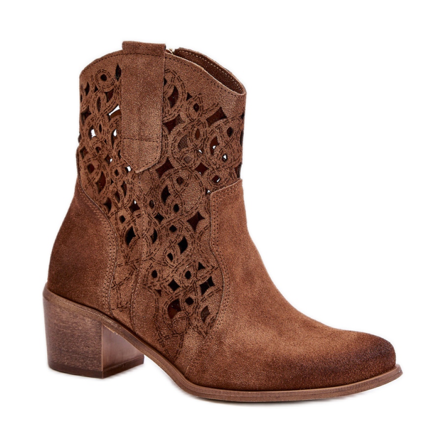 Lewski Lewski Stiefeletten aus Wildleder mit durchbrochenem Obermaterial braun