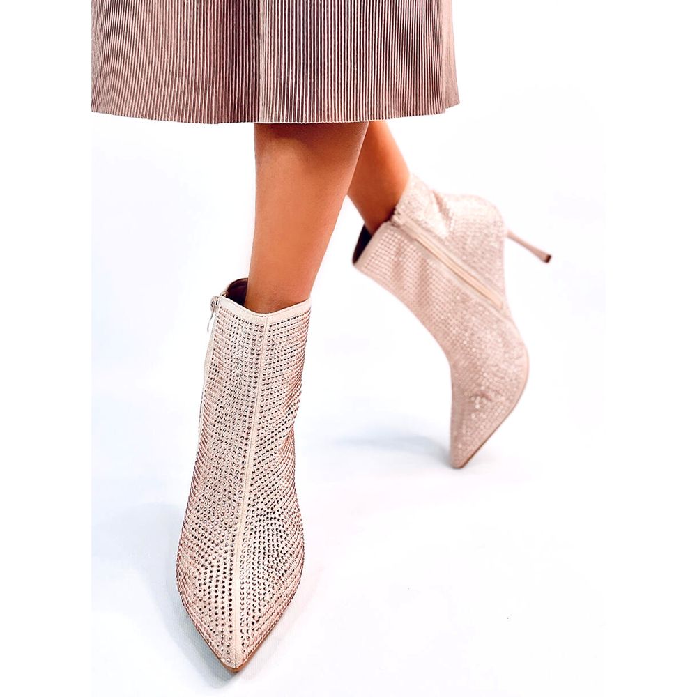 Details: Stiefeletten mit hohem Absatz und Demish-Champagner-Kristallen rosa