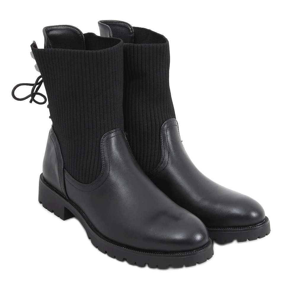 Schwarze Frauenstiefel Ryno Black kombinieren Komfort mit einem entscheidenden, modischen Akzent: Eine flexible Socke, die mit dekorativen Schnürung im Rücken und subtilen Stollen dekoriert ist, verleiht ihnen einen einzigartigen Look. Perfekt jeden Tag - stilvoll, aber komfortabel.