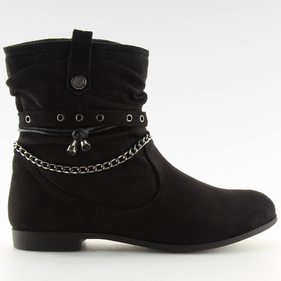 Klassische schwarze Saszki -Stiefel in einem modischen, einfachen Schnitt mit einer zerknitterten oberen und dekorativen Streifen, die den Knöchel einwickeln. Perfekt jeden Tag - leicht, weich und warm dank des Wärme- und Schaumstofffutters. Mit einem praktischen Seitenschloss, das sie schnell und bequem anziehen.