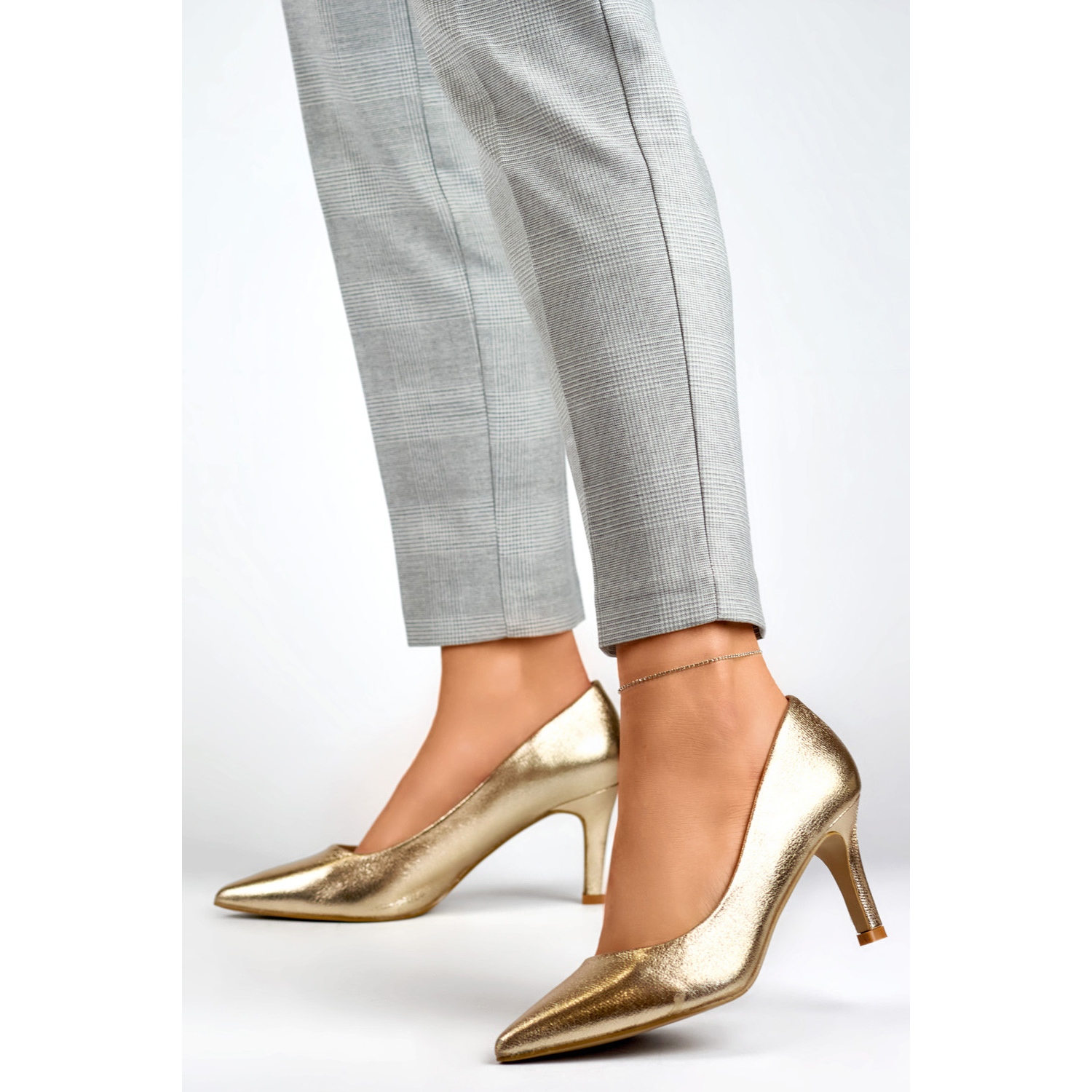 Führen Sie dank der eleganten Pins GD-FL370C Gold der Primo-Marke ein wenig Glühen und Stil in Ihre Garderobe ein. Diese einzigartigen Pumpen auf einer hohen Absatz aus hochwertigem ökologischem Leder kombinieren modisches Design mit Komfort, was sie zur perfekten Wahl für verschiedene Gelegenheiten macht.