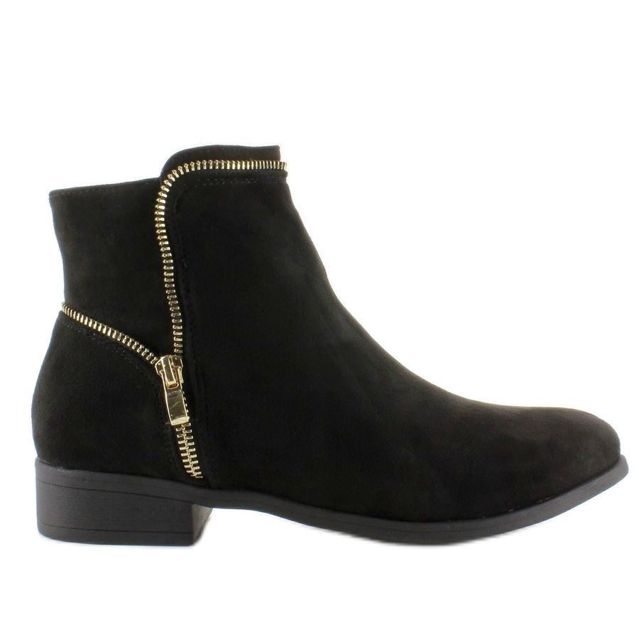 Entdecken Sie Eleganz und Komfort mit den schwarzen Chelsea-Stiefeln AB02-20, die die perfekte Wahl für jede moderne Frau sind. Diese stilvollen Wildlederstiefel mit klassischem Schnitt zeichnen sich durch einen dekorativ eingenähten goldenen Reißverschluss aus, der ihnen einen einzigartigen Charakter verleiht. Dank des zweiten Reißverschlusses an der Innenseite gelingt das Anziehen der Schuhe schnell und einfach, wodurch sie perfekt für jeden Anlass geeignet sind.