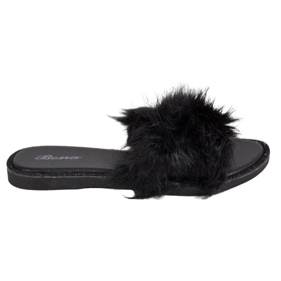Bona Bona Stilvolle Hausschuhe mit Fell schwarz