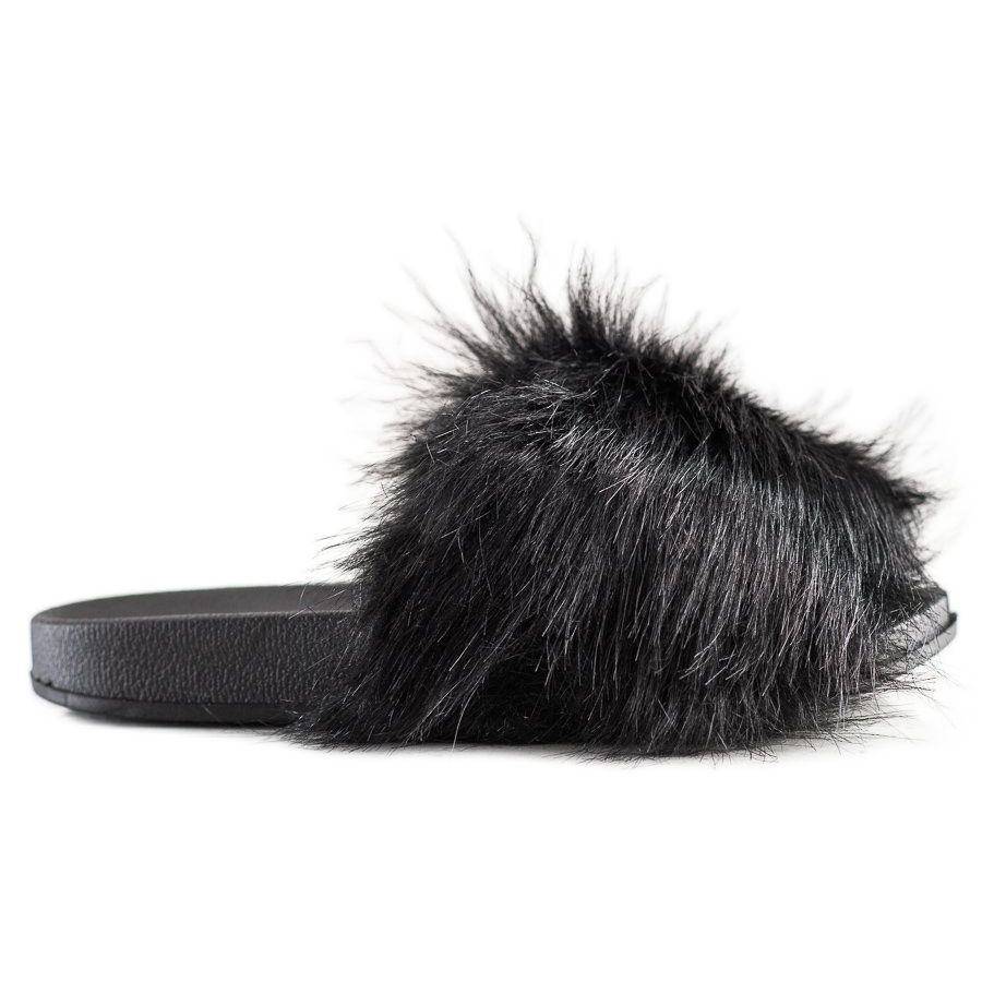 SHELOVET SHELOVET Stilvolle Hausschuhe mit Fell schwarz