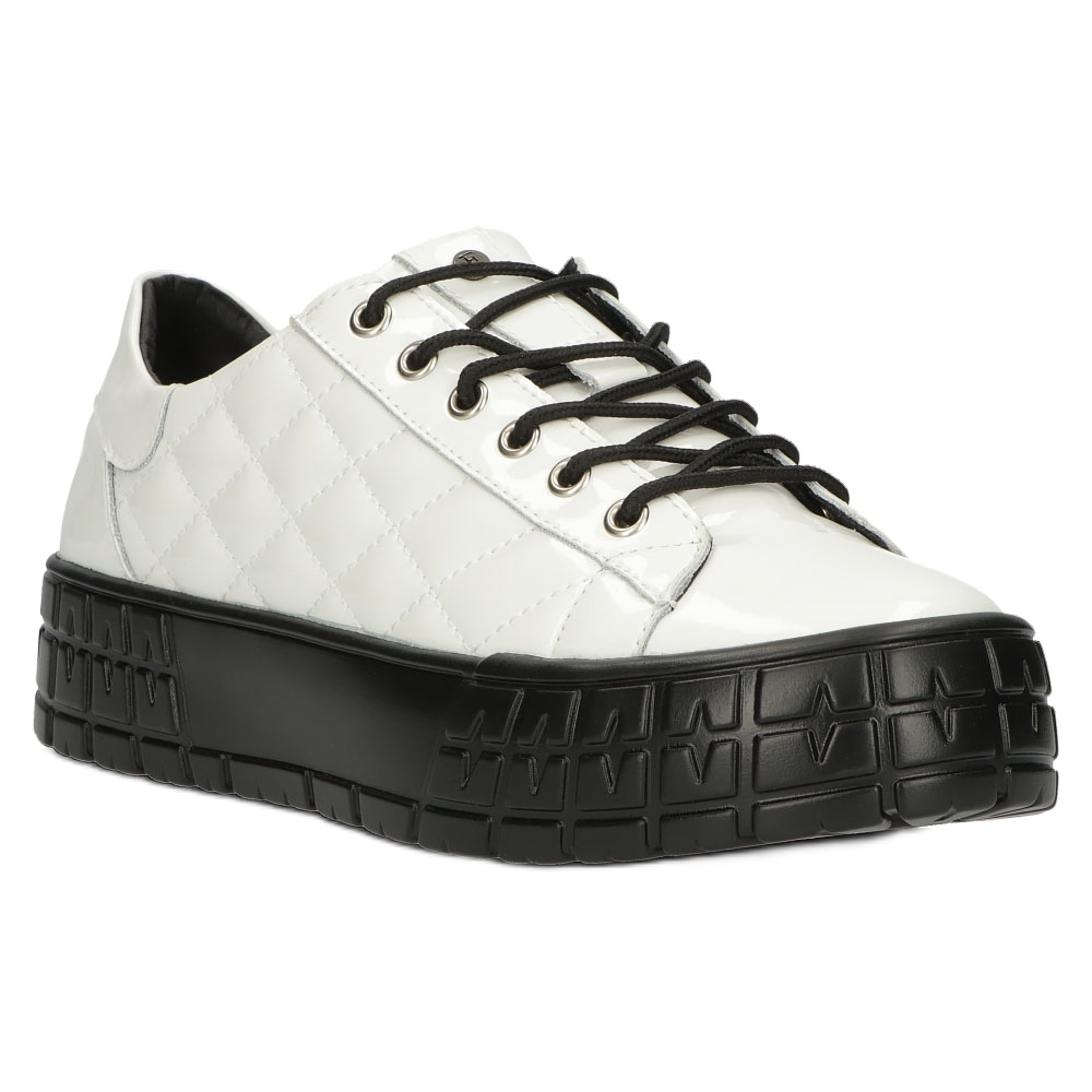 Elegante, lackierte Frauen -Filippo -Sneakers kombinieren ein klassisches Design mit einem Premium -Finish. Weißes, schimmernes natürliches Leder passt perfekt in städtische und lässige Stylisationen, und das kontrastierende schwarze Sohle und das Silberlogo auf der Zunge verleihen ihnen Charakter. Mit Spitzen -up können Sie den Schuh perfekt zum Fuß passen, und die Leder -Insole erhöht den tragenden Komfort.