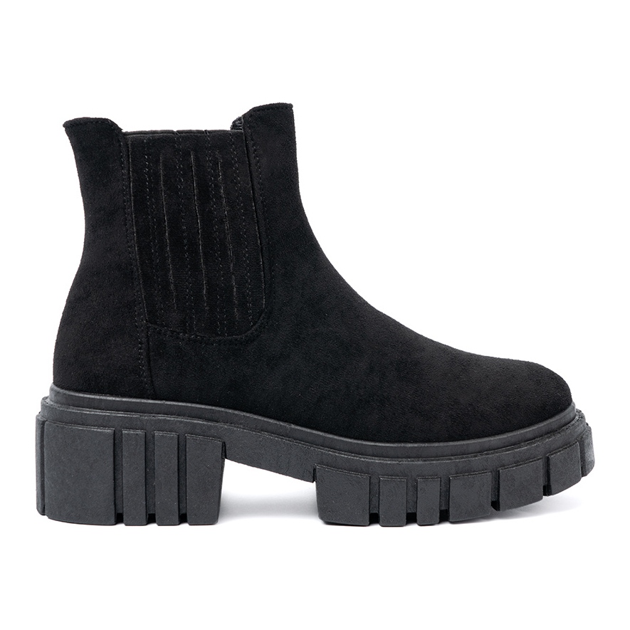 Stilvolle schwarze Stiefel auf der Plattform des Shelvt -Herstellers sind eine gute Wahl für Frauen, die Eleganz und Komfort des täglichen Tragens schätzen. Perfekt für Herbst und Winter, passen diese Stiefel perfekt in den lässigen Stil und fügen den Charakter jeder Stylisierung hinzu.