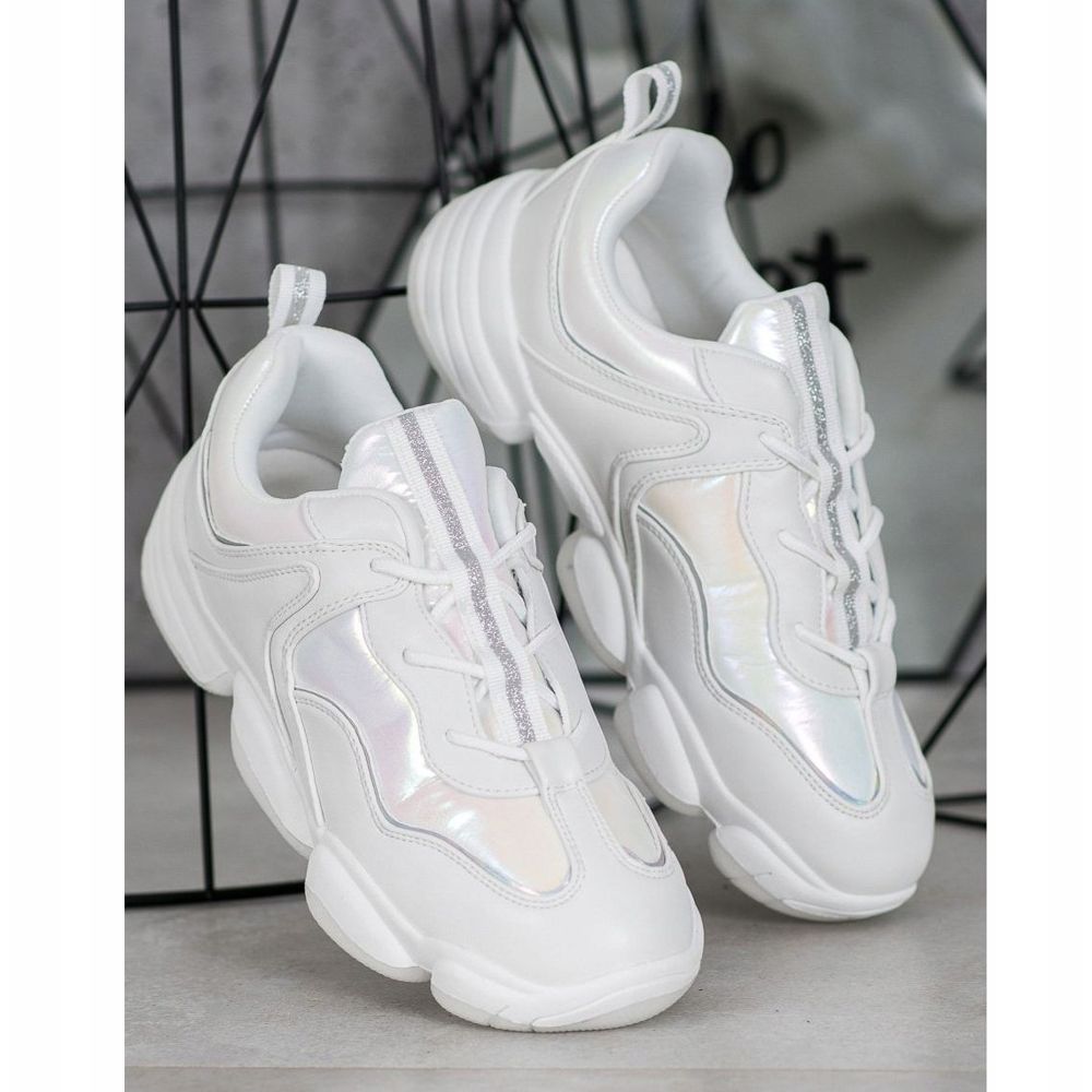 Wir präsentieren stilvolle Kylie-Sportschuhe in elegantem Weiß, die Komfort und modisches Design vereinen. Diese Damenschuhe sind die perfekte Wahl für Frauen, die Wert auf einen modernen Look und Alltagskomfort legen. Sie zeichnen sich durch originelle, glänzende Einsätze am Obermaterial aus, die ihnen einen einzigartigen Charakter verleihen.