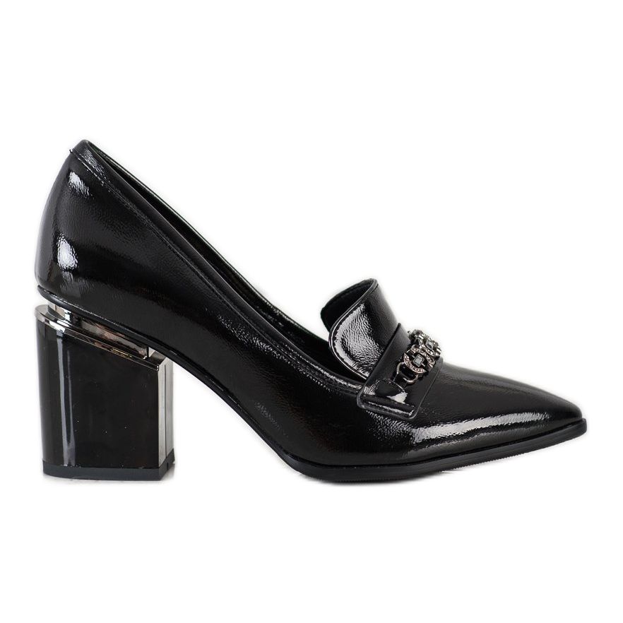 Die stilvollen, lackierten schwarzen Pumps von S. BARSKI sind die perfekte Wahl für jede Frau, die ihrem Look Eleganz verleihen möchte. Diese einzigartigen Pumps aus hochwertigem Material, das Naturleder imitiert, werden mit ihrem einzigartigen Stil sicherlich die Aufmerksamkeit auf sich ziehen. Das schwarz lackierte Obermaterial, das mit dezenten Zirkonen verziert ist, verleiht den Schuhen Chic und Klasse und macht sie perfekt für Zeremonien und Abendpartys.
