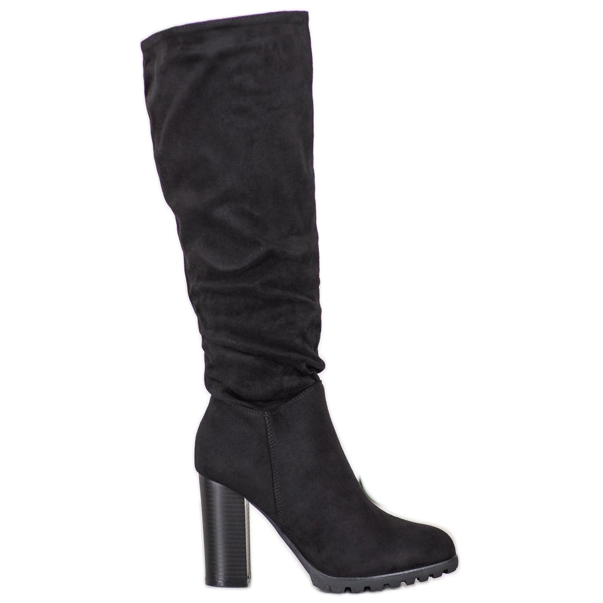 Schwarze Stiefel mit hohen Absätzen von EVENTO sind die perfekte Wahl für Frauen, die Wert auf Eleganz und Komfort legen. Diese klassischen Stiefel aus hochwertigem, ökologischem Wildleder passen perfekt zu jedem Stil, unabhängig vom Anlass. Dank des 10-Zentimeter-Absatzes auf einem soliden Pfosten gewinnen Sie nicht nur ein attraktives Aussehen, sondern auch Stabilität und Komfort beim Gehen.