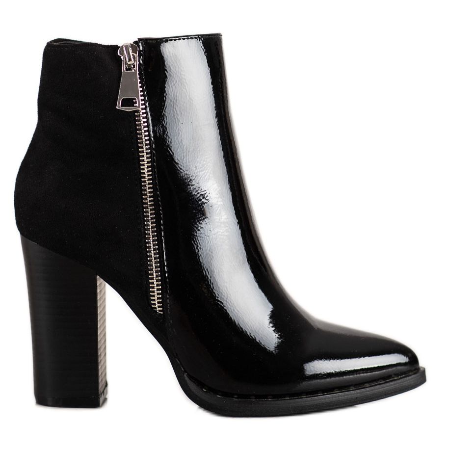 Der äußere Teil der Stiefel ist aus hochwertigen Materialien gefertigt und besteht zu gleichen Anteilen aus einer Kombination aus ökologischem Leder und Wildlederimitat, was ihnen einen modischen Look verleiht. Der dekorative Reißverschluss an den Seiten ist ein interessantes Detail, das Aufmerksamkeit erregt und diese Stiefel von anderen Modellen unterscheidet. Darüber hinaus verleiht ihnen die lackierte Oberfläche einen eleganten Akzent, perfekt für besondere Anlässe.