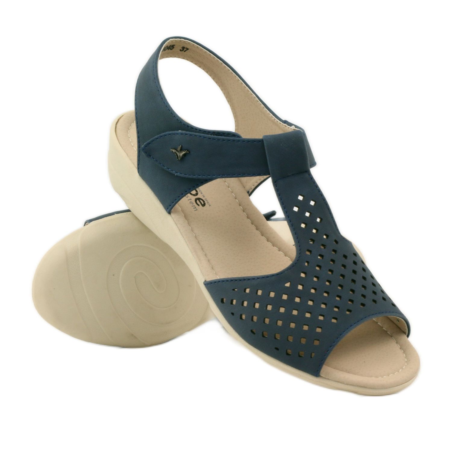 Hier ist die perfekte Lösung für alle, die Komfort und Stil suchen – marineblaue durchbrochene Sandalen der spanischen Marke AloeLoe, Modell wz.244045. Diese einzigartigen Sandalen, die für Menschen mit empfindlichen Füßen entwickelt wurden, bieten dank der Verwendung von hochwertigem, weichem Faux-Wildleder unvergleichlichen Komfort.