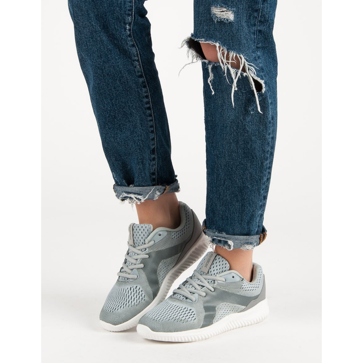 Die eingearbeitete, weiche Fersenkappe und die runde Spitze sorgen für zusätzlichen Komfort, sodass Sie die Schuhe viele Stunden lang tragen können, ohne sich müde zu fühlen. Die Farbe Grau ist ein universelles Angebot, das problemlos in verschiedene Stile passt.