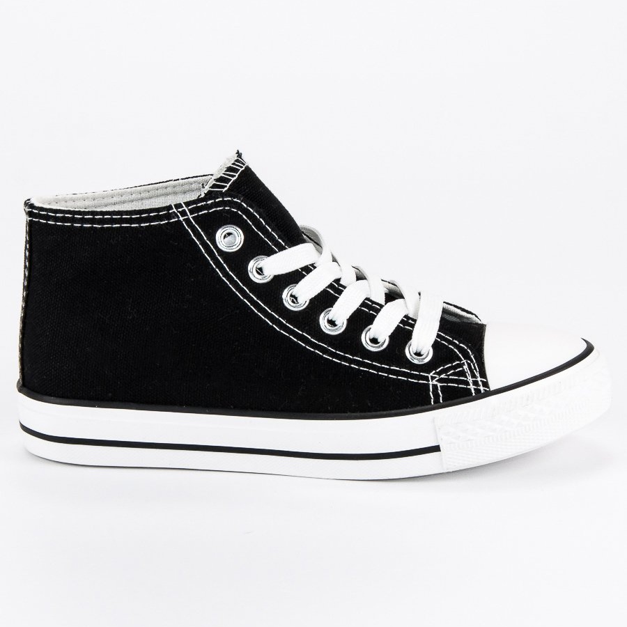 Klassische, universelle High-Top-Sneaker in zeitlosem Schwarz – perfekt für den Schulalltag und die Freizeit. Der schlichte, schnürbare Schnitt sorgt für eine gute Passform und der steife Absatz stabilisiert den Kinderfuß bei Aktivität.