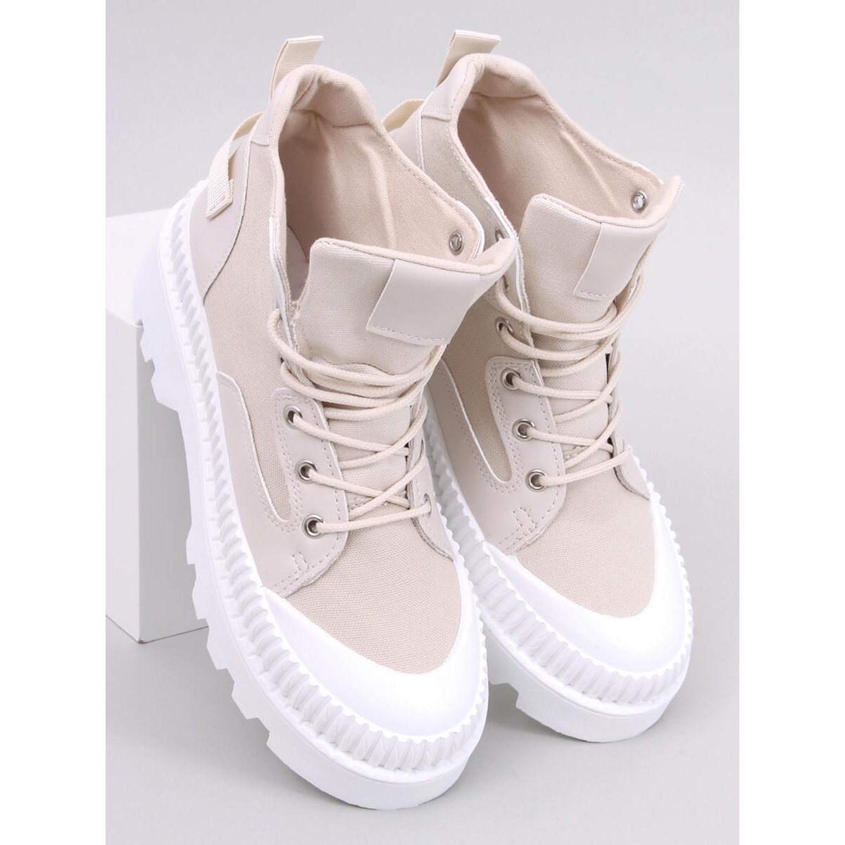 Die High-Top-Sneaker Tinli Beige mit Protektor sind ein absolutes Must-Have für jede Frau, die Wert auf Komfort sowie stilvolle und zeitlose Lösungen im Alltagsschuhwerk legt. Diese eleganten und dennoch lässigen Schuhe mit klassischem und dennoch modernem Design sind die perfekte Wahl für jeden Anlass.