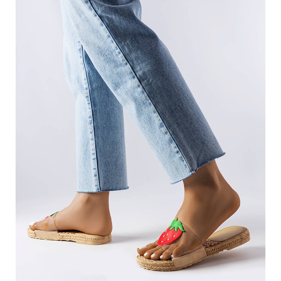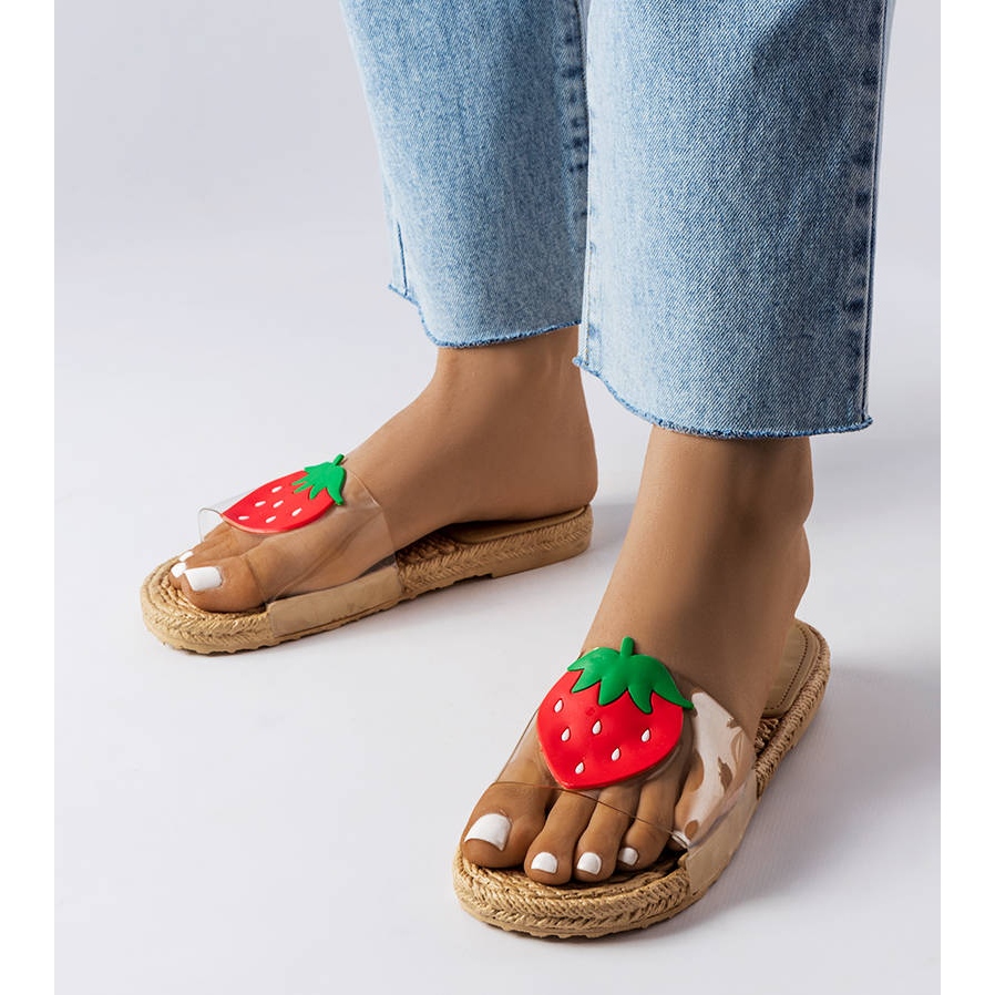 - Modell: Transparente Hausschuhe mit Erdbeerdekoration